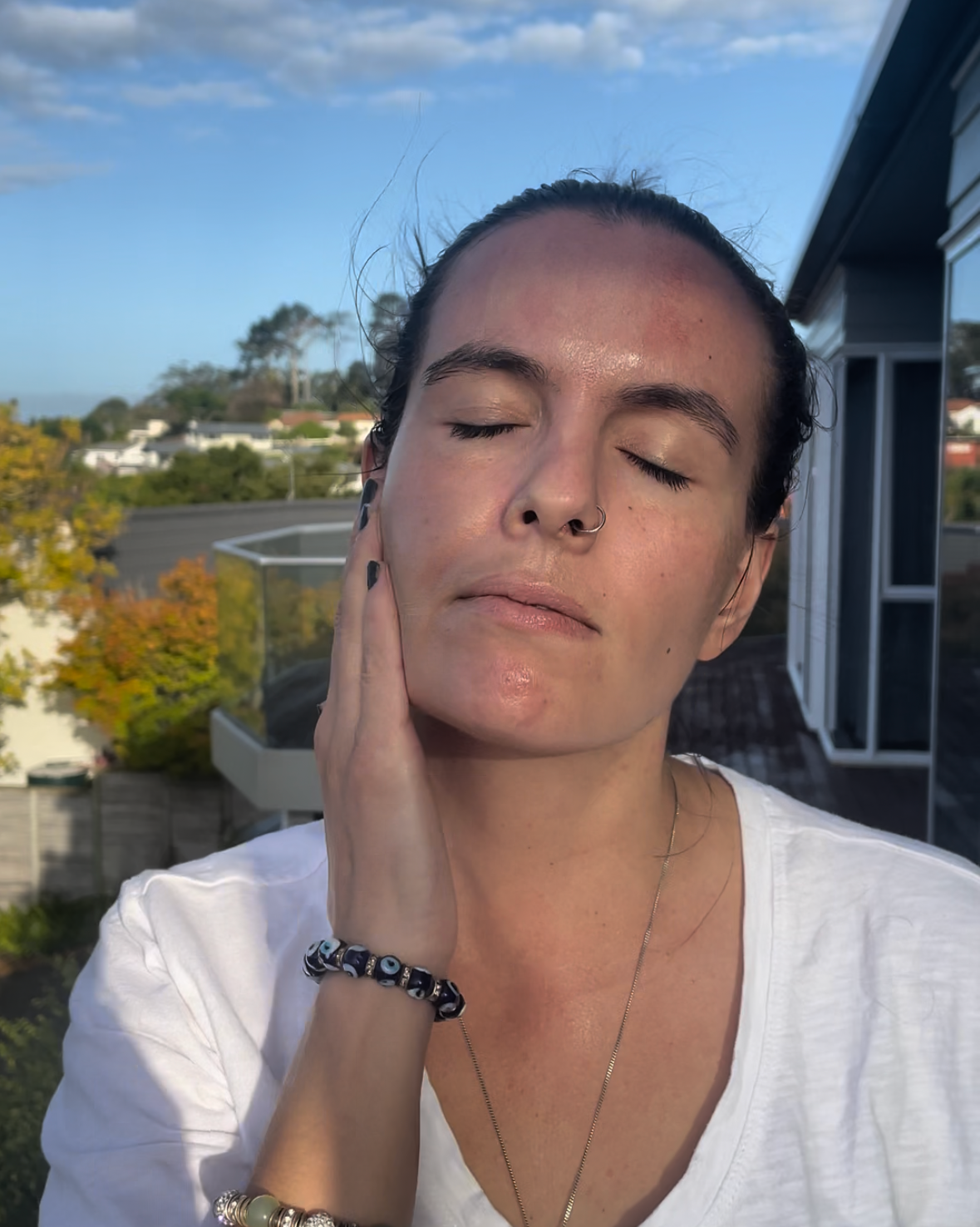 It has a silky, hydrating texture. Zinc oxide can be drying, so sunflower oil balances it - leaving a soft, dewy finish that settles comfortably without the heaviness of traditional zinc sunscreens.